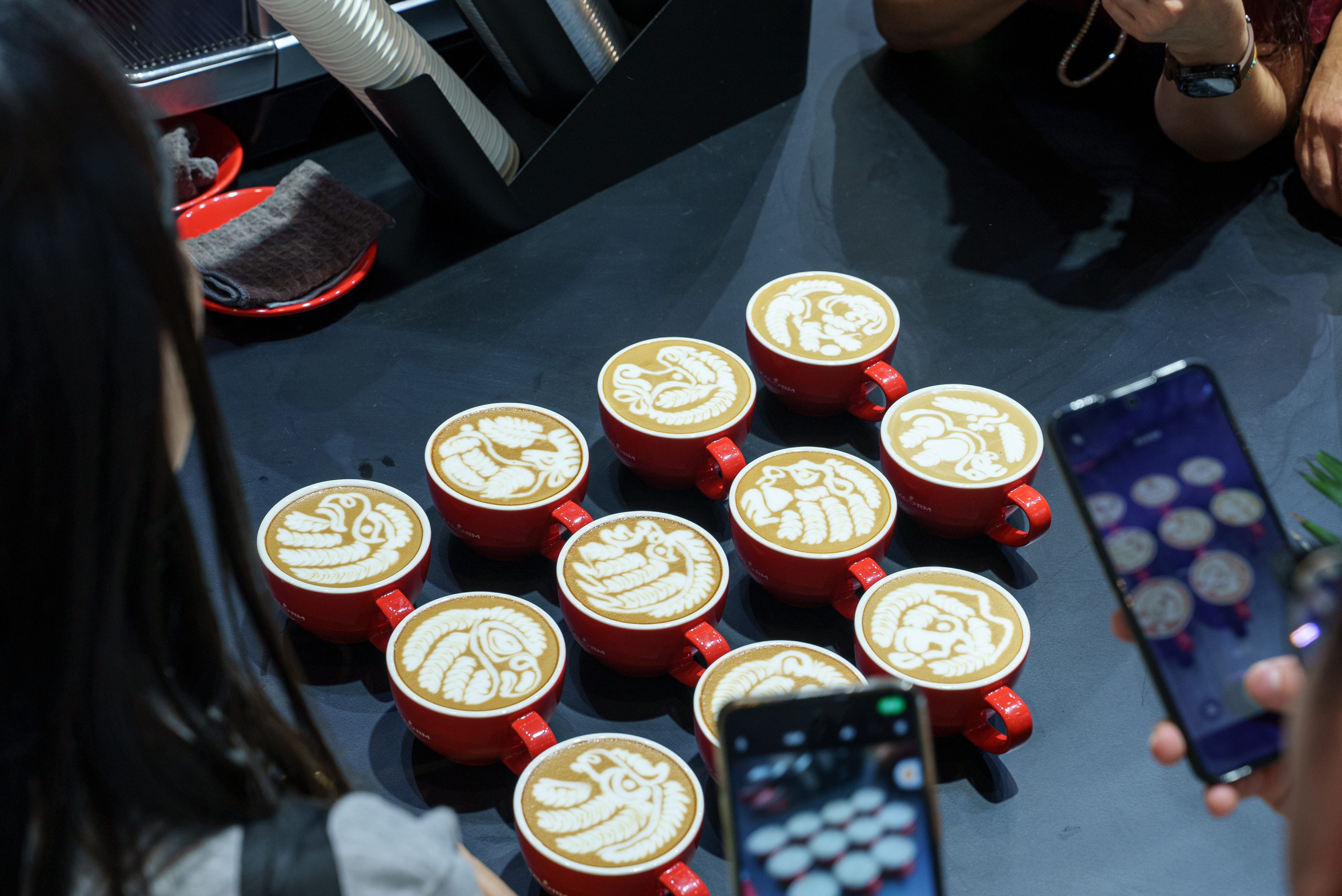 本次展会最受关注的,莫过于咖乐美与2025世界拉花艺术冠军陈卓豪的深度联动。这场拉花互动活动,不仅是一场视觉盛宴,更承载着重要的行业意义——以冠军影响力为载体,向大众宣导咖啡拉花的艺术魅力与咖啡文化的深层内涵,让更多人感受专业咖啡的独特价值。